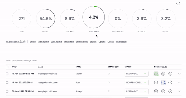 Open a campaign and switch to the PROSPECTS tab to mark your contacts with the relevant interest level: