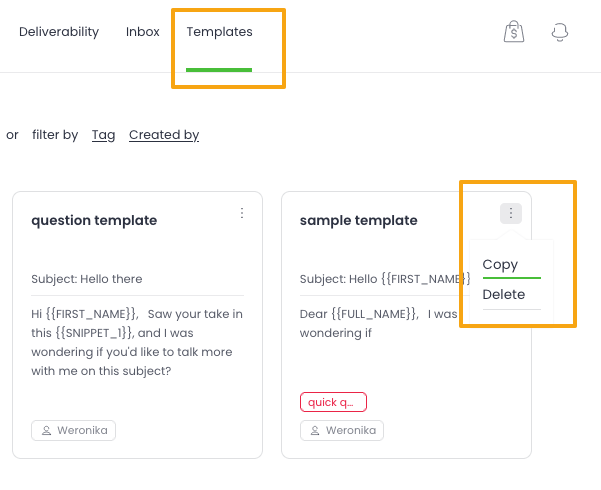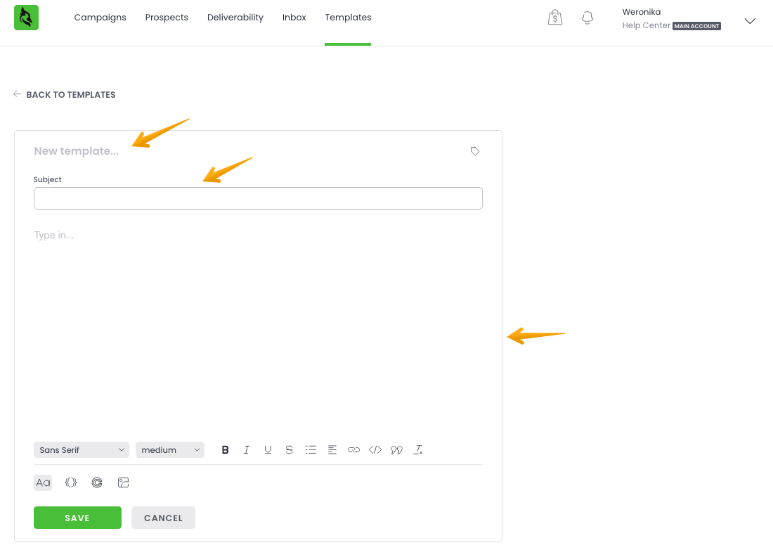 With Templates, you’re able to set up frequently used email copies and keep them all saved in Woodpecker. This feature is available to all users, except Guests (who can’t create or edit campaigns).