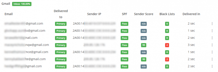 At this point, you’ll be given a code that you are supposed to paste into your message. You also get a list of addresses set up on different email hosting services. These are real addresses – physically set up mailboxes. So you copy the addresses and paste them as the addressees of your message. Then you just send your message (including the code) to all those addresses, and after a few moments, you get a report on the message in the Glock Apps dashboard. In the report, you’ll see an average delivery rate across all the tested hosts, as well as detailed reports for every host, listed one by one.
